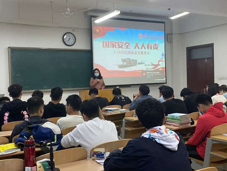 4月15日是第六个全民国家安全教育日,为了全面普及学生的国家安全意识、风险意识、反间谍意识、保密意识和政治警觉,营造良好的自觉履行维护国家安全责任义务和教育的氛围,4月11日晚,航空工程学院在各班会教室召开国家安全教育主题班会,各班班主任主持班会,全体学生参加会议。