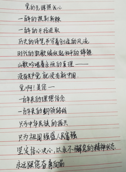 本次诗歌创作大赛是我院学生党史学习教育的内容之一,它让学生用笔书写对党和祖国的热爱,加强了对党史的学习和了解,进一步坚定了做好社会主义事业接班人的决心。