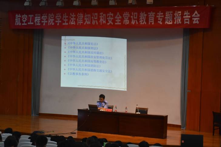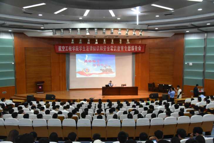 为进一步提升学生法律素养,教育学生知法、懂法、守法,5月17日,航空工程学院邀请保卫处张斌老师,彭李派出所张晓芳警官现场开讲,报告会在第二报告厅举行,2020级全体学生参加此次报告会。