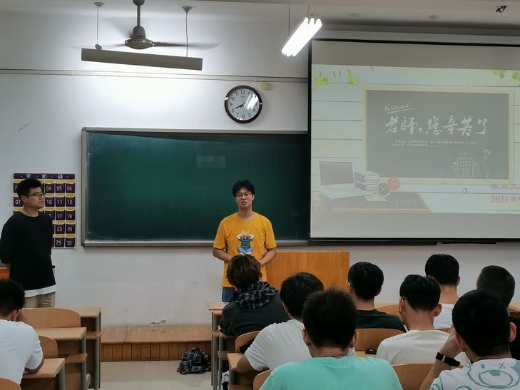 2021年9月10日是37个教师节,为进一步增强学生爱校荣校意识,形成尊师重教的良好风气,充分展现广大教师爱岗敬业、无私奉献的精神风貌,在教师节来临之际,航空工程学院在各班会教室组织开展“感恩教师”主题教育班会,各班班主任主持班会,全体学生参加了班会。