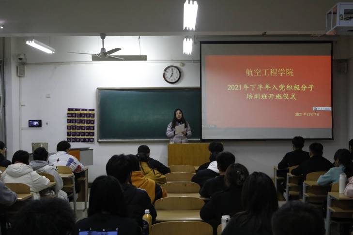 12月7日晚,航空工程学院2021年下半年入党积极分子培训班在8教510如期举行。辅导员宫欣和44名入党积极分子参加了此次培训班。