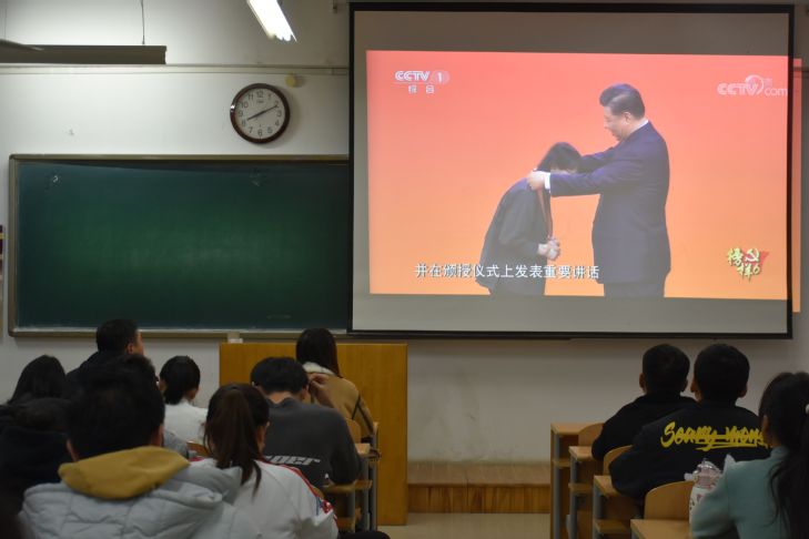 12月8日晚20:00,航空工程学院组织学生党员、入党积极分子在8教510统一收看了由中央组织部,中央广播电视总台联合录制的节目《榜样6》,共同聆听全国“两优一先”典型事迹,感悟为祖国和人民无私奉献的优秀共产党人的初心和使命。