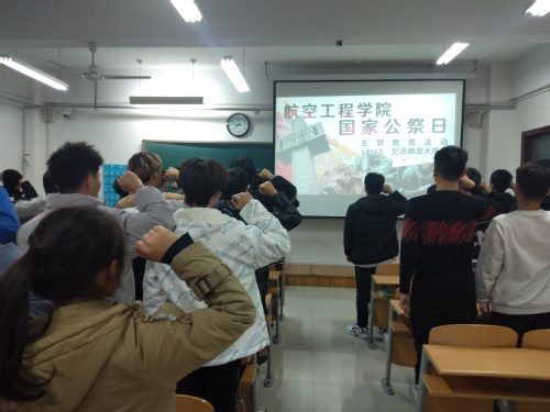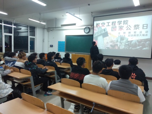 12月13日是南京大屠杀遇难同胞84周年纪念日,同时也是第八个国家公祭日。为了缅怀死难同胞、致敬革命先烈,航空工程学院在各班会教室举办“12.13国家公祭日”主题教育活动,全体同学参加了活动。