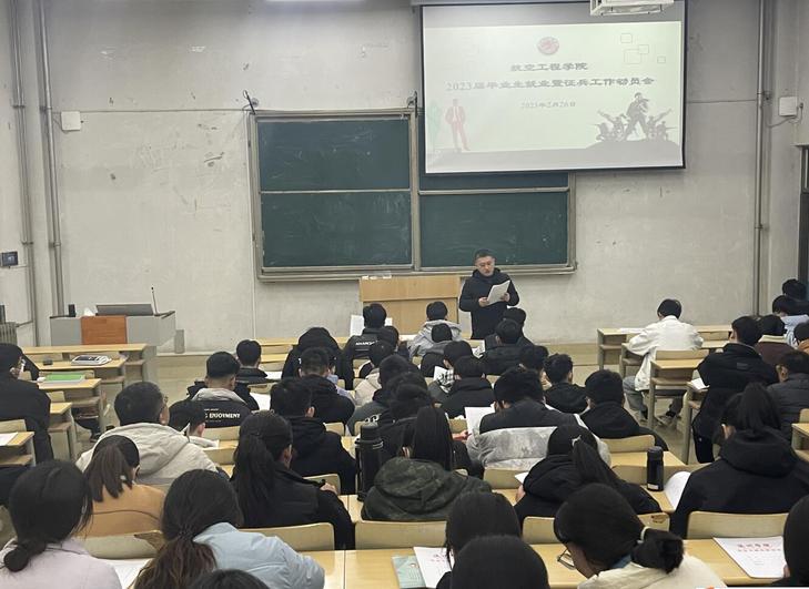 为做好2023届毕业生就业工作,进一步加强征兵工作动员力度,全力以赴把就业和征兵工作落到实处,2月26日晚,航空工程学院在1教107教室召开2023届毕业生就业暨征兵工作动员会。学生管理科科长秦承宽主持会议,全体2023届毕业生参加了会议。