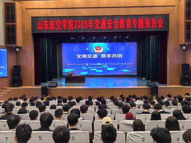 启动仪式后,师生代表在学苑会堂聆听了由滨州经济技术开发区交警大队马专增警官作的《文明交通 携手共创》专题报告,马警官围绕道路交通安全形势、交通安全常识和交通事故处理三个方面,通过剖析交通事故典型案例,重点讲解了闯红灯、不戴头盔、超速行驶等常见的交通违法行为及其引发的严重后果,为师生们上了一堂精彩的交通安全教育课。