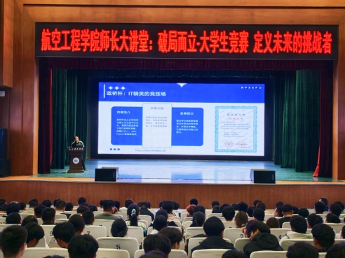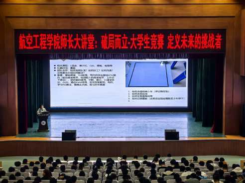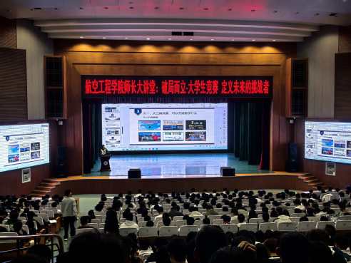 为切实引导2025级新生系好大学学习生活的“第一粒扣子”,帮助他们确定大学阶段的发展方向,高质量地开展入学教育,10月15日晚,航空工程学院在学苑会堂举办师长大讲堂活动,活动由学生科科长赵望锋主持,学院高金海博士携两名学科竞赛优秀学生担任主讲人,全体2025级新生参加了活动。