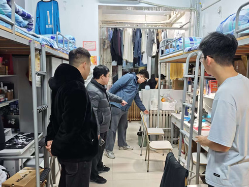 本次排查重点包括消防设备是否齐全完好、疏散通道是否畅通无阻、电力线路是否存在老化破损、宿舍是否存放易燃危险物品等内容。检查过程中,辅导员不仅认真查看公共区域的消防设施配备情况,还深入学生宿舍内部,对可能存在安全隐患的角落进行仔细排查。秦承宽在检查中强调,学生宿舍是人员密集场所,消防安全直接关系到每一位同学的生命财产安全。要以“时时放心不下”的责任感,抓好宿舍消防安全工作。针对发现的问题,学生科科长赵望锋现场提出了整改意见,要求相关宿舍立即整改,并对学生开展安全教育,提醒同学们注意用电安全、及时清理宿舍垃圾、离宿断电,确保消除安全隐患。