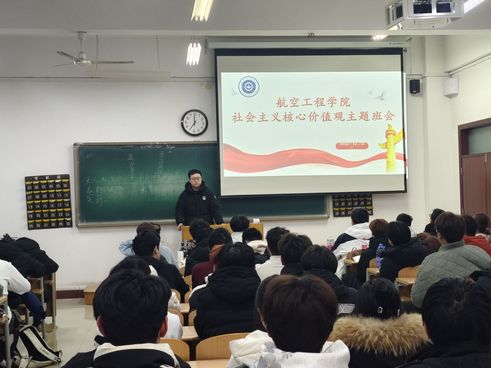 为深化新时代大学生思想政治教育,引导青年学子将个人理想融入国家发展大局,航空工程学院于2025年12月14日组织全院各班级召开“践行社会主义核心价值观 铸就航空报国魂”主题教育班会。班会由各班班主任主持,全体学生参加了班会。