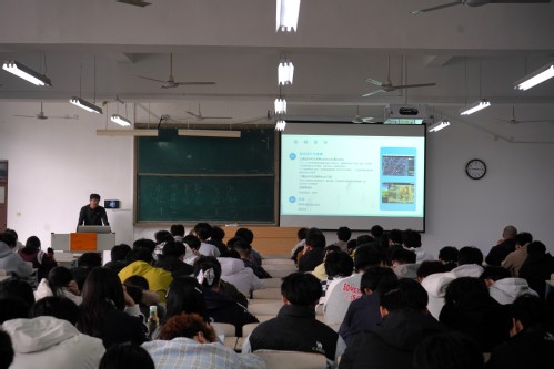 讲座中,杨锋以“无人机产业生态与职业能力图谱”为切入点,结合低空经济政策,系统梳理了无人机研发、应用、运维三大领域的技术演进方向。针对学生关注的职业发展问题。他强调,学院派理论功底与企业级工程思维缺一不可,建议同学们通过认识实习参观企业、参与企业真实项目、考取CAAC无人机操控员执照等加速成长。朱传章则结合企业参与的项目,解析无人机在植被保护和物流运输等方面的作用。他要求同学们,在校期间要掌握扎实的理论知识,考取相关操作证书,同时也要学会根据场景需求定制相应的解决方案。互动环节中,学生就“如何平衡竞赛实践与课程学习”“低空经济领域创业机遇”等问题踊跃提问,现场气氛热烈。