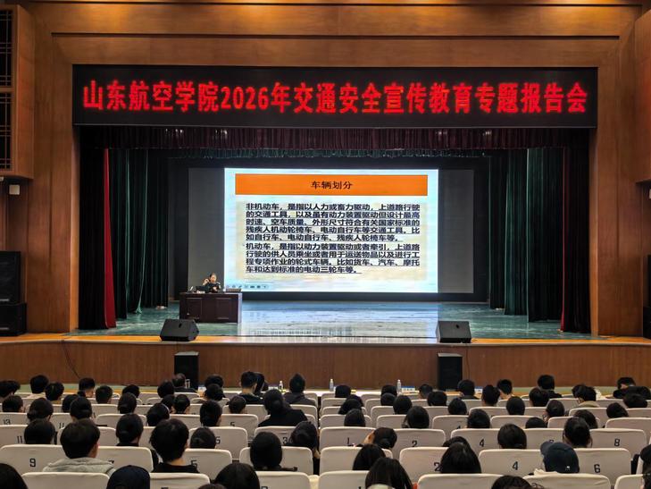 为进一步强化校园交通安全宣传教育,全面提升师生交通安全意识与文明出行素养,3月31日下午,我院组织师生到学苑会堂聆听交通安全宣传教育专题报告会,滨州市公安局交通管理支队经济技术开发区大队民警应邀作报告。